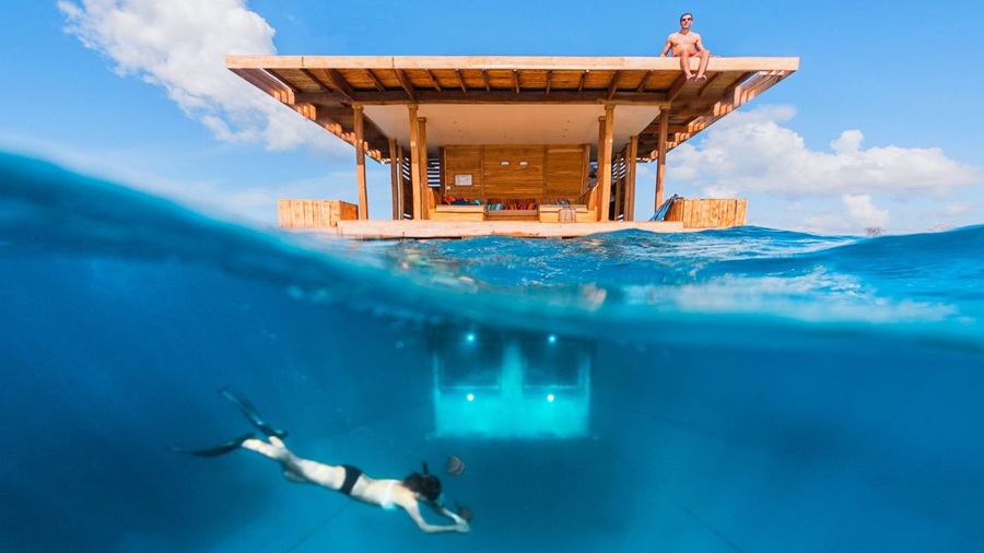 Imagina dormir rodeado de peces y corales. En The Manta Resort, en la isla de Pemba, puedes hacerlo. Su «Underwater Room» es una estructura de tres niveles, donde el nivel inferior es una habitación totalmente sumergida, con paredes de cristal que ofrecen una vista panorámica de 360 grados de la vida marina del Océano Índico.