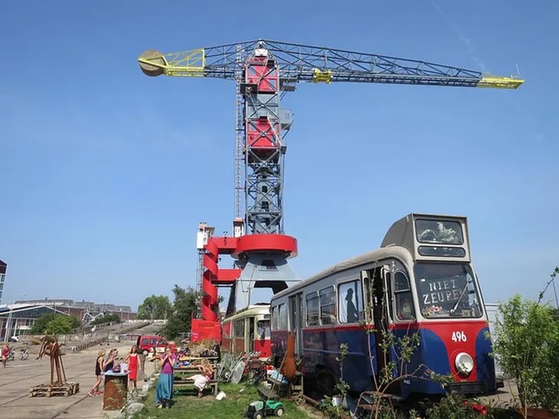 En el antiguo astillero NDSM de Ámsterdam, una grúa portuaria de 50 metros de altura ha sido transformada en el exclusivo Crane Hotel Faralda. Este alojamiento boutique ofrece tres suites de lujo, cada una con un diseño interior único y vistas panorámicas espectaculares de la ciudad y el río IJ.