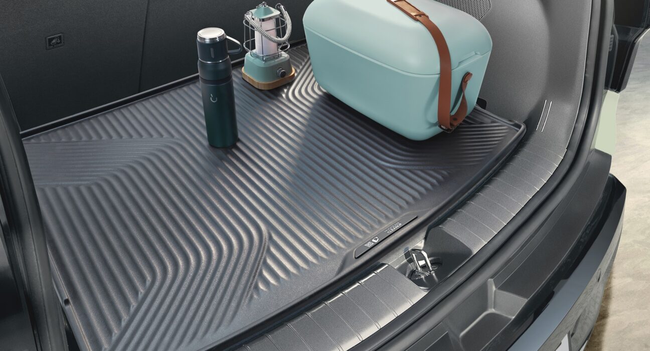 Inspirándose en la filosofía de diseño «Opposites United» de Kia, el patrón de «ondas geométricas» de la superficie superior del revestimiento del maletero recuerda a las olas y al flujo de basura hacia un área de recolección, haciendo eco del proceso de The Ocean Cleanup para extraer plástico marino. Fabricado con un 40 % de plástico oceánico reciclado*, el revestimiento del maletero de alta calidad es tan duradero, protector y funcional como un revestimiento de maletero convencional. Cada revestimiento también incluye un código QR, que proporciona a los clientes información detallada sobre el desarrollo del producto y la asociación, así como el logotipo de The Ocean Cleanup.